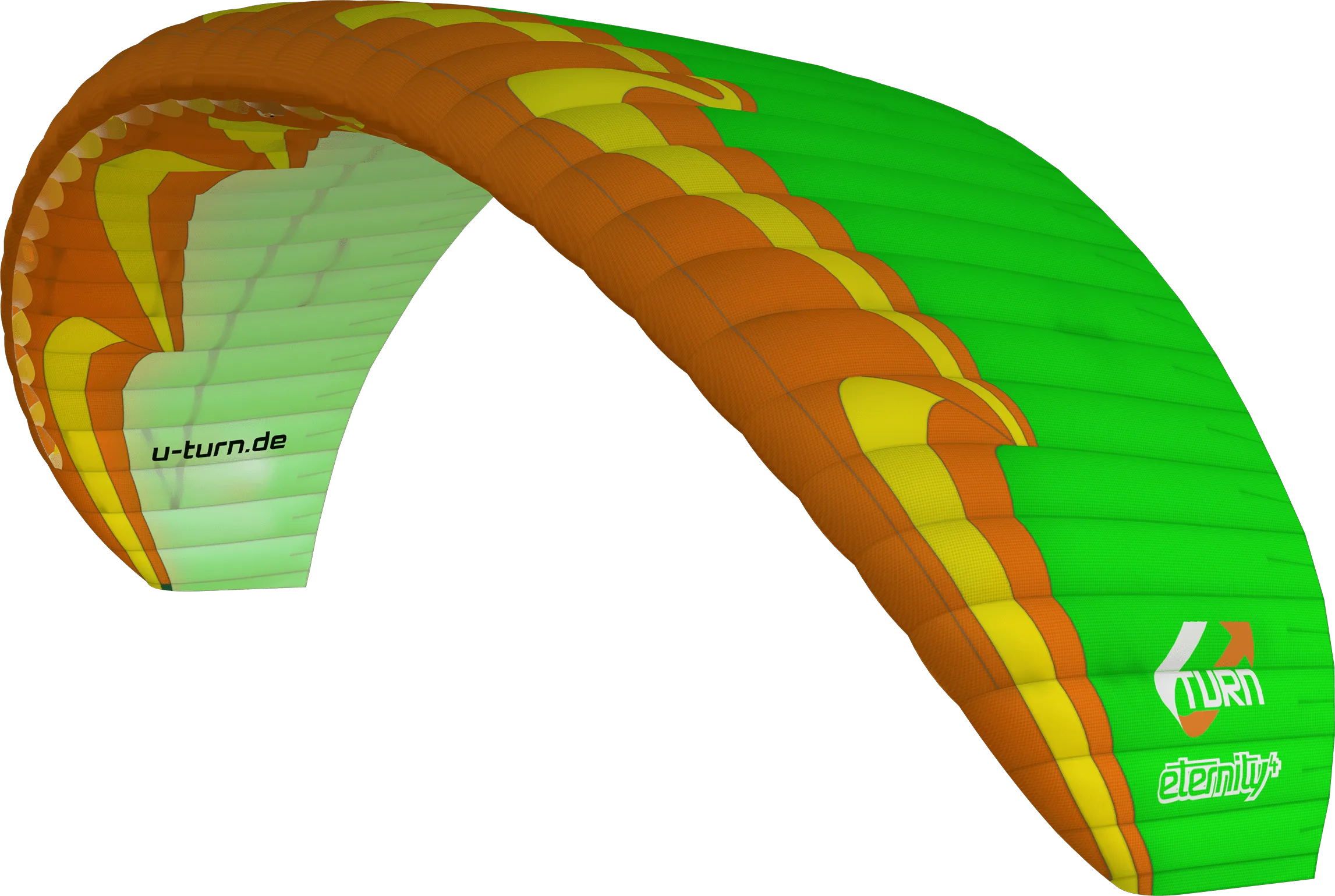 Chefkonstrukteur Ernst Strobl entwickelt die neuste ETERNITY Generation auf der Basis von der A-Klasse Referenz EMOTION 4. Radikal neu gedacht, fließen bei U-Turn alle Erkenntnisse aus dem acrobatik Extrembereich in die Flügelkonzepte ein. Eine angedeutete Sharknose verhilft dem highend A-Flügel sich geschmeidig an der Thermik fest zu beißen. Hauchdünne Nitinol Verstärkungen an der Eintrittskante halten die Profilform bereits am Boden unter Spannung. Die superelastische Nickel-Titan-Legierung lässt starke Verformungen zu und springt durch den Memory-Effekt schnell in die Ursprungsform zurück. Zusätzlich sorgt das 3D-Shaping (3DS) für die optimierte Profilspannung im Nasenbereich. Miniribs an der Austrittskannte und das Brake Gathering System (BGS) sorgen für die sportliche Handling Charakteristik. Das High Pressure Crossport Design (HPCD) optimiert die Querbelüftung der Crossports und schafft einen ausgewogenen Innendruck des gutmütigen Flügels. Das Leinensetup wurde zu Gunsten höherer Performance modifiziert und konnte zum Vormodell um 20% gekürzt werden. Zum Einsatz kommen farblich differenzierte ummantelte PPSLS Leinen der neusten Generation. Auch bei den Tragegurten wurde alles für eine übersichtliche und elegante Optik konzipiert. Eine edle Zierleine markiert die hinteren Tragegurte für die bessere Einhänge-Übersicht und führt das Color Code Connection (CCC) weiter. Die Pilot Assistent (PAS) Piktogramme sorgen für Orientierung. Die neu entwickelten U-Turn Neopren Comfort-Handles mit Fitlock Halterung lassen sich stufenlos in der Größe anpassen. Durch entfernen der flexiblen Verstärkung lassen sie sich zu reinen Softhandles wandeln.