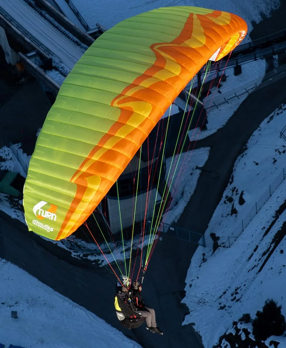 Einen Alltagsflügel mit optimiertem Leistungsgewicht – so wurden bei allen Bestrebungen Gewicht einzusparen ein großes Augenmerk auf die Haltbarkeit gelegt. Bewusst wurde bei dem Flügel auch auf die Gewichtsersparung durch Softlinks zu Gunsten der vereinfachten Handhabung verzichtet. Zum Einsatz kommen hier die leichten Skytex27 Materialien in Kombination mit Dokdo20 Der ETERNITY 4 ist der perfekte Einsteigerschirm der auch noch lange nach der Schule den sicheren Spaßfaktor verspricht. Der Flügel richtet sich an alle Piloten die einen highend A-Klasse Schirm der neusten Generation suchen. Maximale passive Sicherheit ausgestattet mit viel Leistung.
